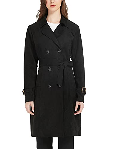 XULIKU Women’s Suede Leather Trench Coat Double Breasted Lightweight Slim Fit Long Overcoat with Belt for Womens Fashion 2023