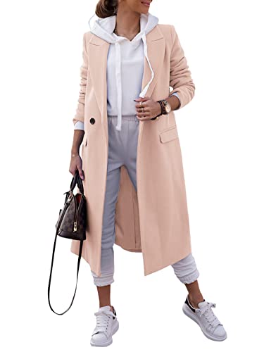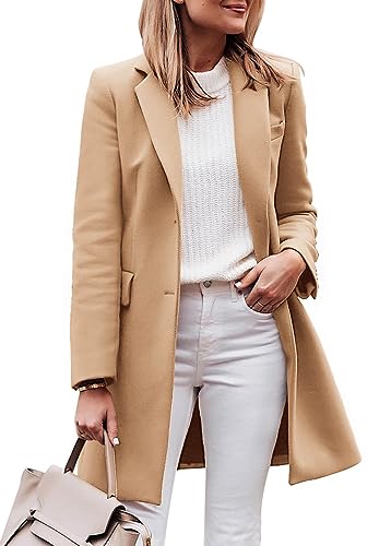 Zwurew Womens Casual Notched Lapel Collar Single Breasted Mid-Long Peacoat Khaki Fall Winter Jacket Trench Coats
