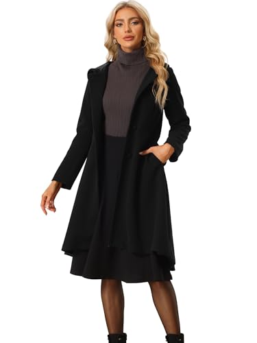 Allegra K Women’s Overcoat Single Breasted Pockets A-Line Warm Hooded Winter Coat X-Small Black