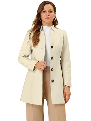 Allegra K Women’s Turn Down Collar Overcoat A-Line Single Breasted Winter Coat with Pockets Medium Cream White