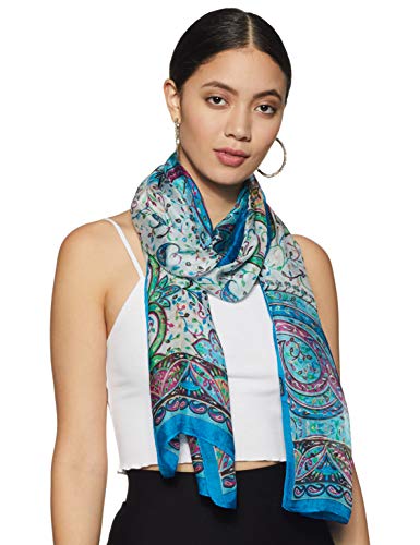Stylore 100% Silk Scarf Lightweight Sunscreen Wrap Scarves Paisley Dome Blue