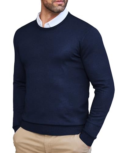 COOFANDY Men’s Crew Neck Sweater Classic Fit Lightweight Long Sleeve Knitted Pullover for Casual Or Dressy Wear Dark Blue
