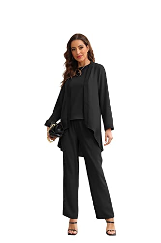 MODFUL Women’s 2 Piece Long Casual Blazer with Pants Small Plaid Elegant Business Suit Set(Grey,X-Large)
