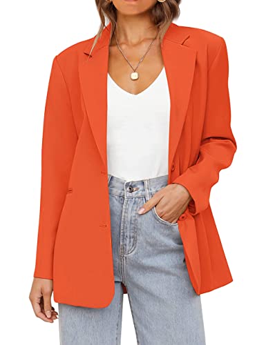 MEROKEETY Women’s 2023 Fall Casual Blazers Long Sleeve Lapel Open Front Button Work Blazer Jackets with Pockets, Orange, M