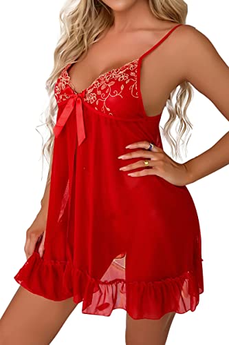 Banamic Women Babydoll Lingerie Nightgown Mesh Chemise Ruffle Open Front Sleepwear