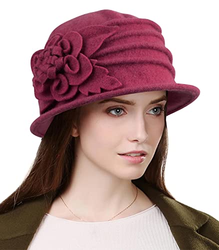 Sumolux Women Beret Hat French Vintage Floral Wool Dress Cloche Classic Winter Hat 1920s