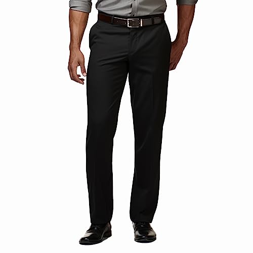 Men’s Classic Fit Flat Front Dress Pants Expandable Waist Wrinkle Free Suit Pants for Men(WZ,Black,44W×30L)