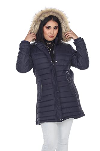 Facitisu Women’s Winter Parka Down Coat Puffer Jacket Overcoat with Removable Fur Hood Plus (Navy, 2XL)