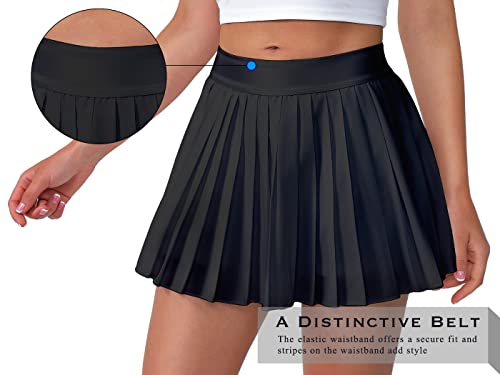 Eleloveph Women’s Pleated Tennis Skirt-Flowy Athletic Design,Suitable for Golf, Skater, Running Sports Black