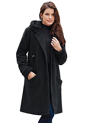 Roaman’s Women’s Plus Size Hooded Button-Front Fleece Coat – M, Black