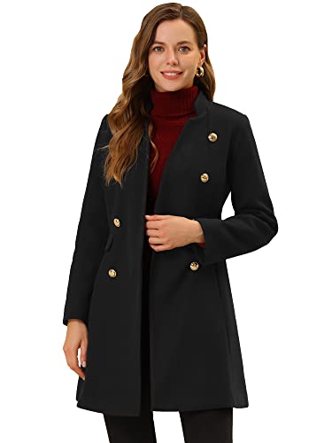 Allegra K Women’s Winter Overcoat Stand Collar Mid-thigh Double Breasted Buttoned Long Coat Medium Black