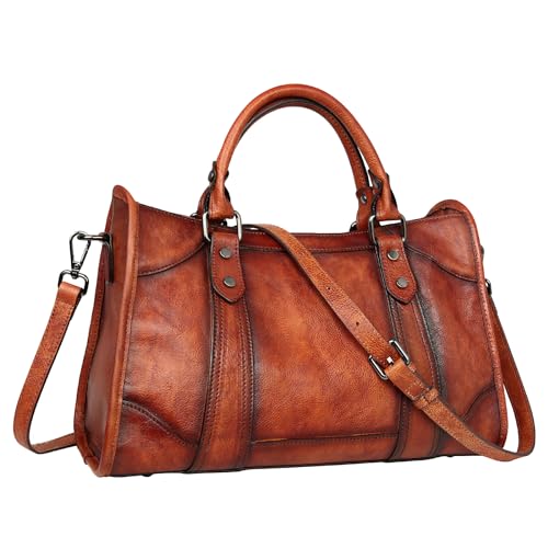 Iswee Retro Leather Satchel Purse and Handbags Designer Crossbody Purses for Women Shoulder Bags Women’s Top-Handle Tote (Dark Brown)