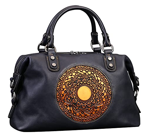 Leather Handbag for Women, Retro Mandela Crossbody Handbag Tote Bag (Blue grey)
