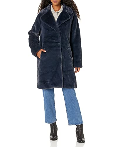VELVET BY GRAHAM & SPENCER Women’s Evalyn Lux Faux Fur Overcoat, Navy, XL