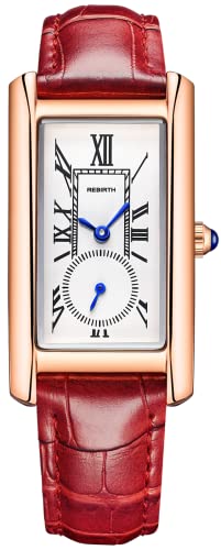 carlien Women Quartz Watch Lady Stylish Rectangle Dress Watch with Leather Strap and Sapphire Crown (Rose Red)