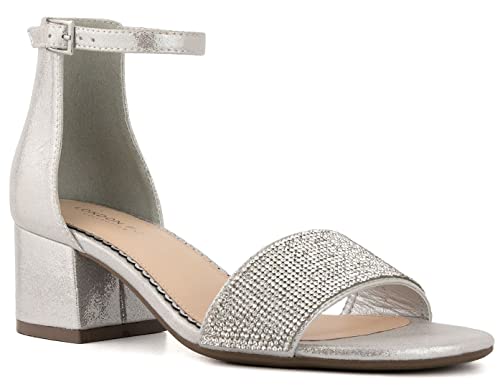 LONDON FOG Women’s Nikki Low Two Piece Block Heel Dress Shoe Ladies Ankle Strap Pump Sandal silver stone 8