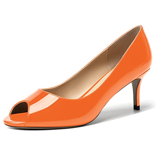 MOVINSTEPS Women’s Slip On Peep Toe Patent Open Toe Dating 2.5 Inch Stiletto Mid Heel Dress Pumps Shoes Orange Size 7.5 – Tacon Alto